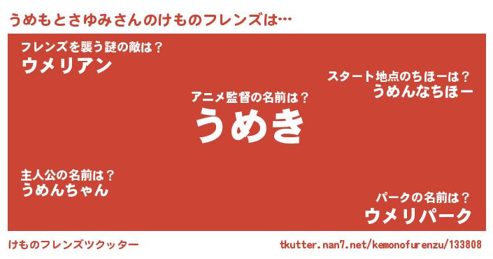 | ファンタジー風あだ名 | 『ファントムウメス』『ユリウメヴァット』 |