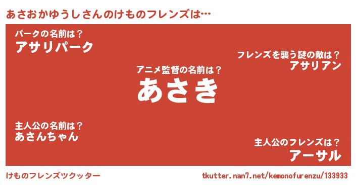 | ヘコむあだ名 | 『あさっ子』『あさおかゆうし(震え声)』 |