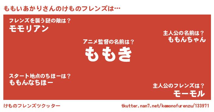 | ポケモン風あだ名 | 『ヒモモイアカリ』『モモゴンZ』 |