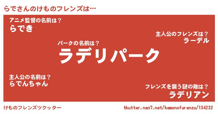 | 肩書あだ名 | 『らで中尉』『らで閣下』『らで団長』 |