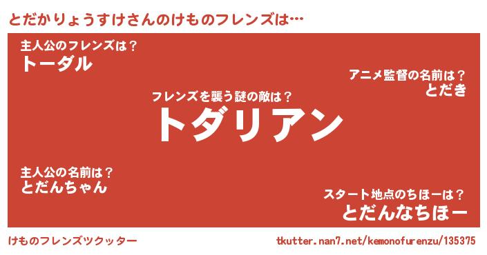 | 男性向けラノベタイトル風あだ名 | 『おまえをオタクにしてやるから、俺をとだかりょうすけにしてくれ! 』 |