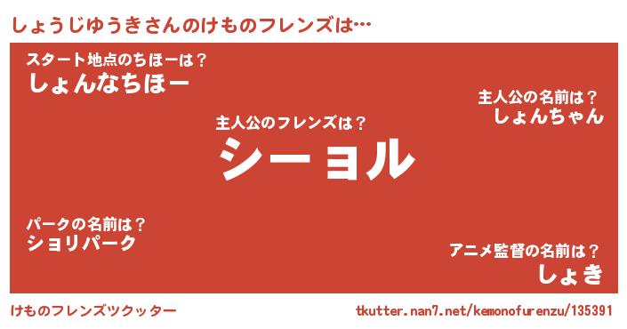 | 意味不明あだ名 | 『住所不定無職しょうじゆうき(77歳)』 |