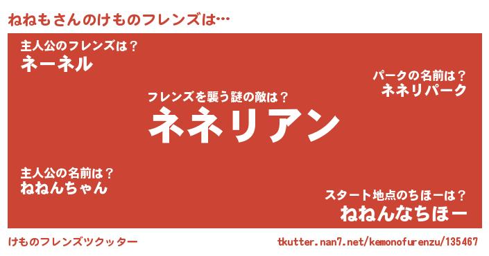 | 男性向けラノベタイトル風あだ名 | 『ネネモスレイヤー』『魔弾の王とねねも』 |