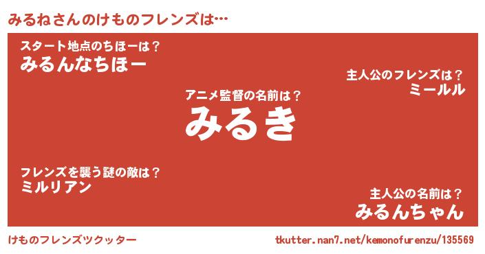 | ヒーロー風カッコイイあだ名 | 『幻影騎士ミル』『ウルトラみるねマン』 |