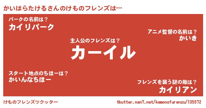 | 料理風あだ名 | 『かいはらたけるごはん』 |