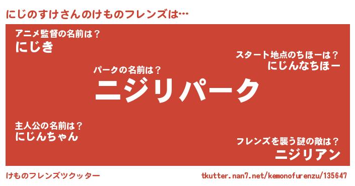 | 意味不明あだ名 | 『自称にじのすけ』『ニラ科にじのすけ属』 |