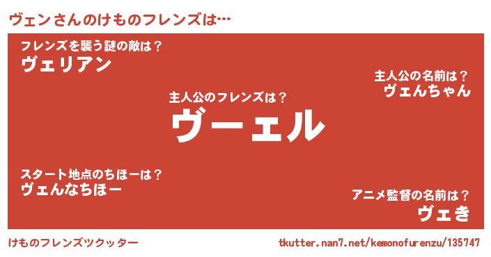 | ヘコむあだ名 | 『ヴェン(笑)』『ヴェっ子』『豆乳』 |