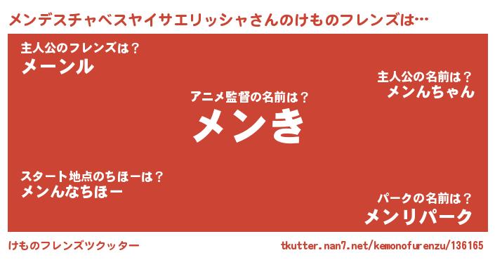 | 男性向けラノベタイトル風あだ名 | 『メンデスチャベスヤイサエリッシャの嫁は女の子じゃないと思った?』 |