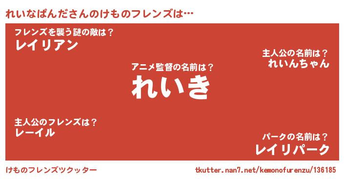 | 意味不明あだ名 | 『とにかく怪しいれいなぱんだ』 |