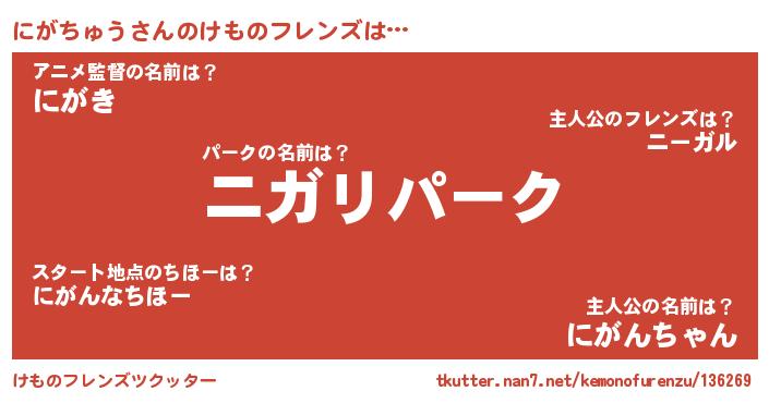 | 男性向けラノベタイトル風あだ名 | 『Re:にがちゅうから始める異世界生活』 |