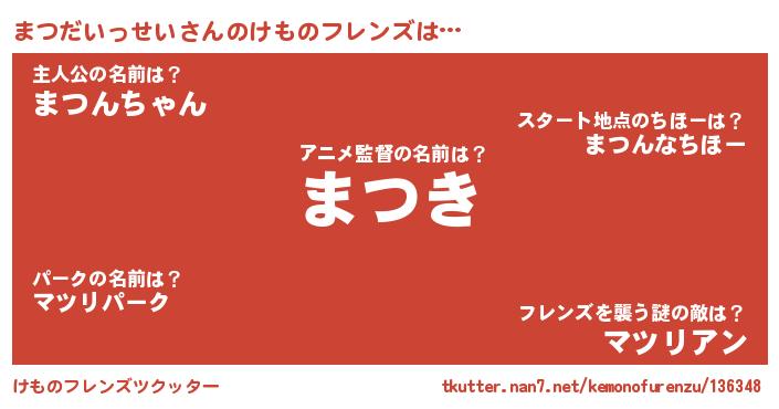 | 2回繰り返すあだ名 | 『おやおや』『まつまつ』『せかせか』 |