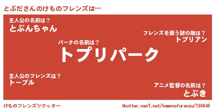 | 男性向けラノベタイトル風あだ名 | 『Re:とぷだから始める異世界生活』 |