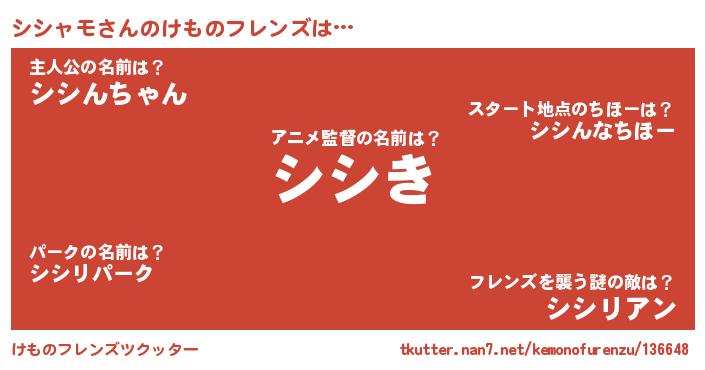 | ヘコむあだ名 | 『シシぷりん』『シシふぇ~』『豆乳』 |