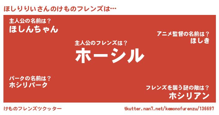 | 意味不明あだ名 | 『永久保存ほしりりい』 |
