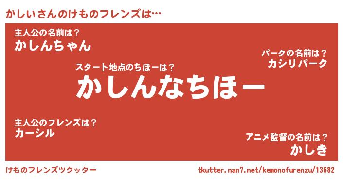 | 2回繰り返すあだ名 | 『しゃなりしゃなり』『かかしし』 |
