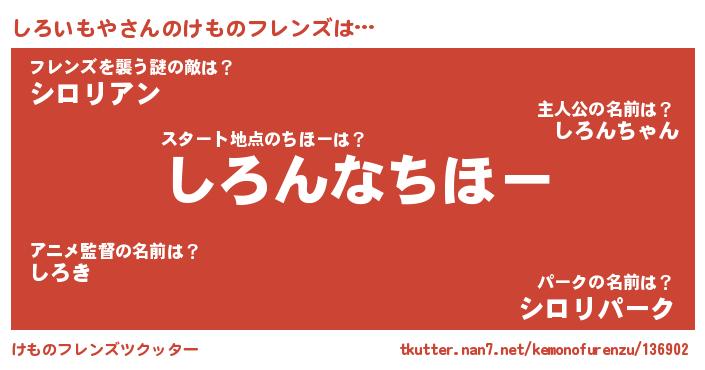 | ヒーロー風カッコイイあだ名 | 『仮面シロダー』『愛の使者しろいもや』 |