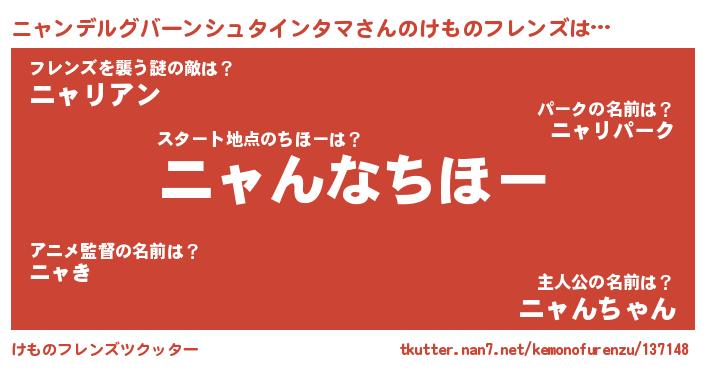 | 欧米人風あだ名 | 『ニャンデルグバーンシュタインタマクリステル』 |