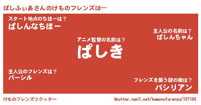 | 男性向けラノベタイトル風あだ名 | 『魔弾の王とぱしふぃあ』 |