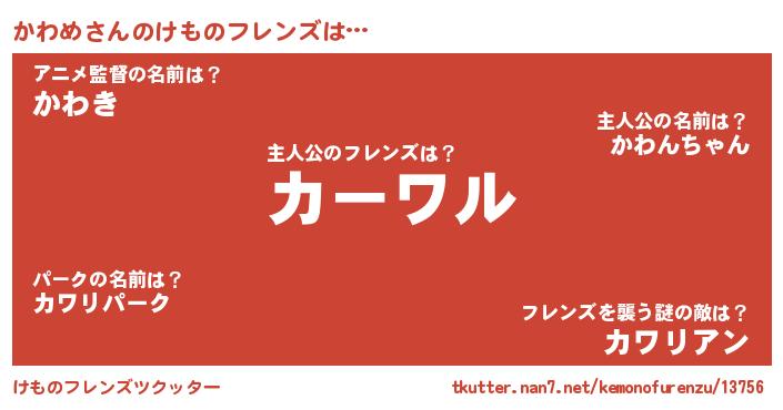 | 意味不明あだ名 | 『永久保存かわめ』『ペロリンかわめ』 |