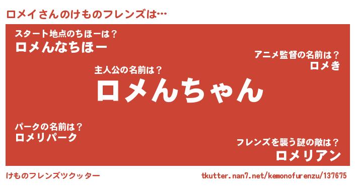 | 2回繰り返すあだ名 | 『ロメロメ』『ロロメメ』『しげしげ』 |