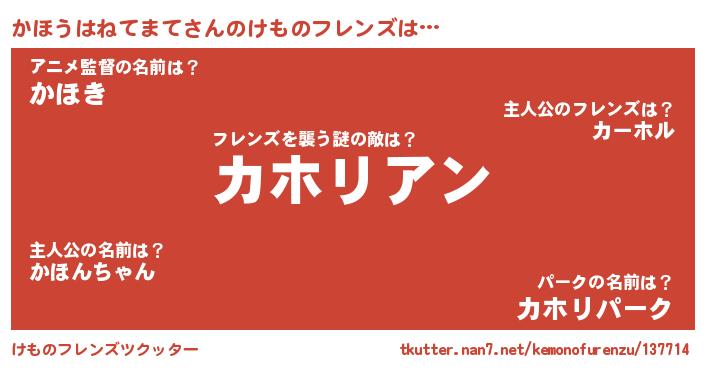 | 男性向けラノベタイトル風あだ名 | 『かほうはねてまてに滅ぼされるだけの簡単なお仕事です』 |