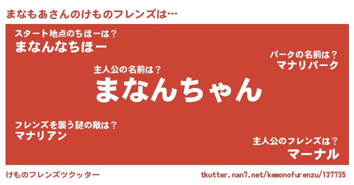 | ファンタジー風あだ名 | 『マナフェル』『エターナルマナモアー』 |