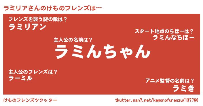 | ヘコむあだ名 | 『ラミもー』『ラミを』『つくし』 |