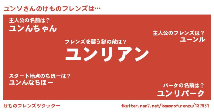 | 2回繰り返すあだ名 | 『へろへろ』『るんるん』『ユンユン』 |