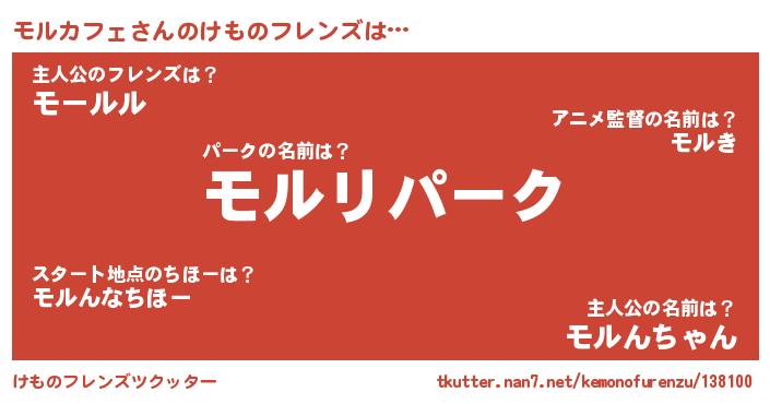 | 意味不明あだ名 | 『自称モルカフェ』『永久保存モルカフェ』 |