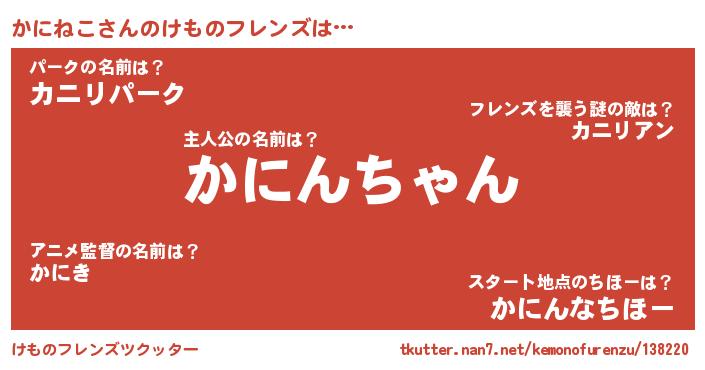 | ヒーロー風カッコイイあだ名 | 『スーパーカニネコ』『仮面カニダー』 |