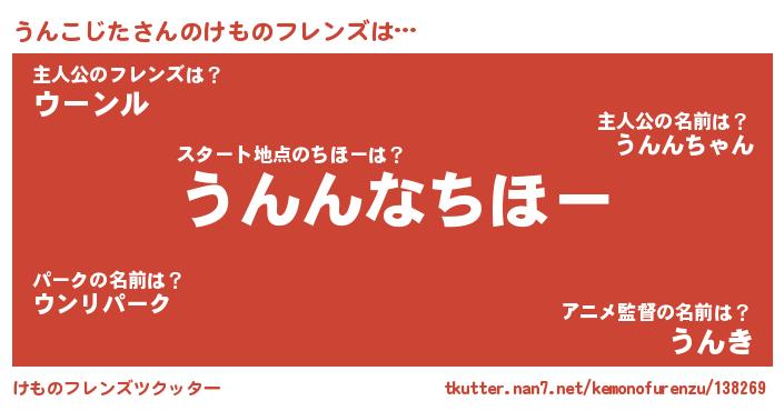 | 男性向けラノベタイトル風あだ名 | 『うんこじたに滅ぼされるだけの簡単なお仕事です』 |