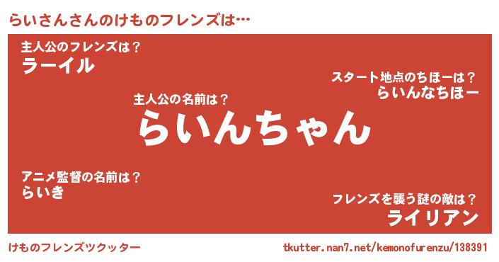 | ヘコむあだ名 | 『らいにゅー』『らいさん(爆)』 |
