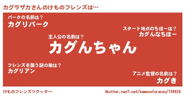 | ファンタジー風あだ名 | 『カグフェル』『ゼカグトゥ』 |