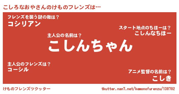 | ファンタジー風あだ名 | 『コシフェル』『クインコット』 |