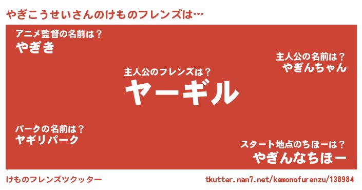 | 意味不明あだ名 | 『住所不定無職やぎこうせい(40歳)』 |