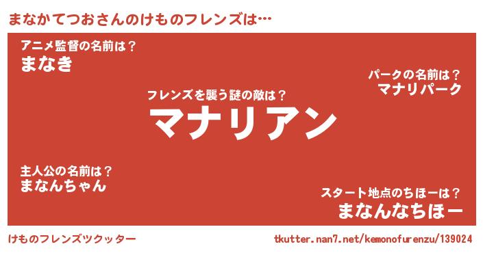 | 肩書あだ名 | 『まなかてつお助手』『まなかてつお大佐』 |