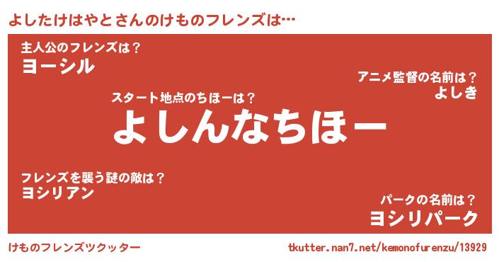 | ポケモン風あだ名 | 『ヨシタダネ』『ゼニヨシ』 |