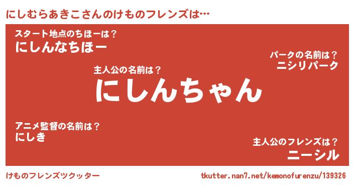 | ポケモン風あだ名 | 『ニシチュウ』『ニシムダネ』 |