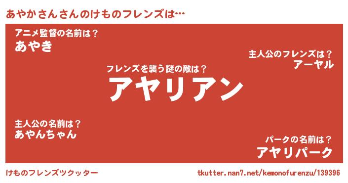 | ヒーロー風カッコイイあだ名 | 『慈愛の使者あやかさん』『仮面アヤダー』 |