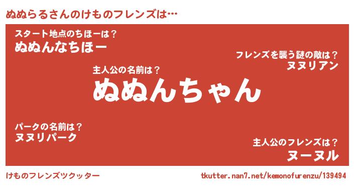 | 男性向けラノベタイトル風あだ名 | 『緋弾のヌヌラル』『魔弾の王とぬぬらる』 |