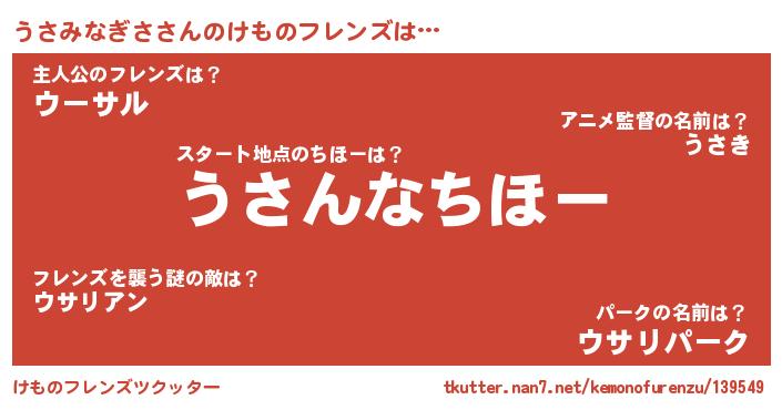 | 肩書あだ名 | 『うさみなぎさ総理大臣』 |