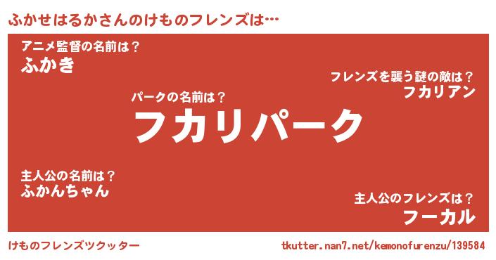 | 肩書あだ名 | 『ふかせはるか総統』『ふかせはるか担任』 |
