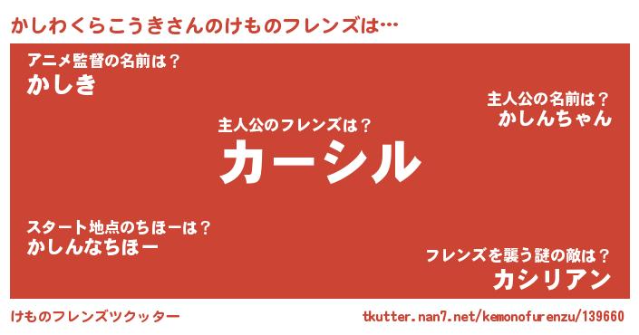 | ヘコむあだ名 | 『かしわくらこうき(笑)』『かしお』 |