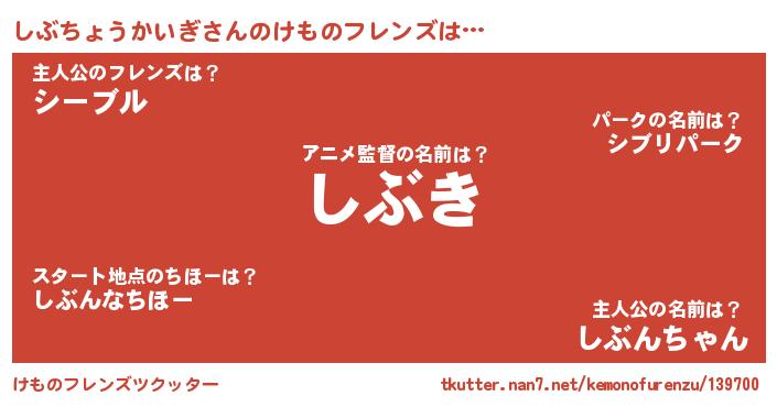 | 意味不明あだ名 | 『住所不定無職しぶちょうかいぎ(7歳)』 |