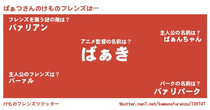 | 意味不明あだ名 | 『とにかく怪しいばぁつ』『自称ばぁつ』 |