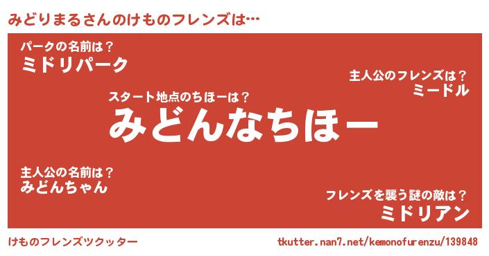 | 男性向けラノベタイトル風あだ名 | 『転生したらみどりまるだった件』 |