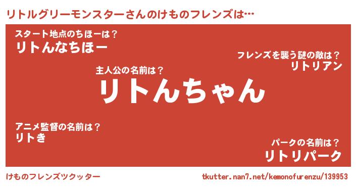 | 2回繰り返すあだ名 | 『リトリト』『よぼよぼ』『リリトト』 |