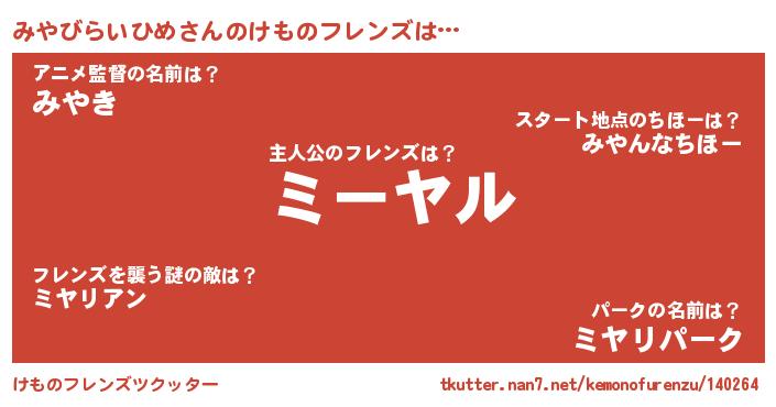 | ヘコむあだ名 | 『みやびらいひめ(苦笑)』『みやっちょ』 |