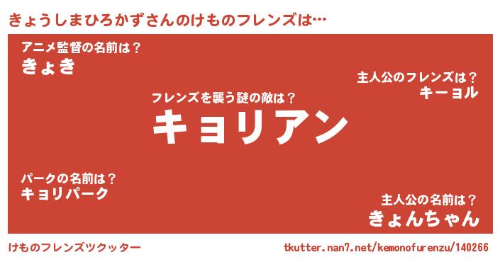 | ヘコむあだ名 | 『きょぷりん』『きょふぇ~』 |
