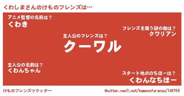 | ヒーロー風カッコイイあだ名 | 『仮面クワダー』『ネオクワシマ』 |